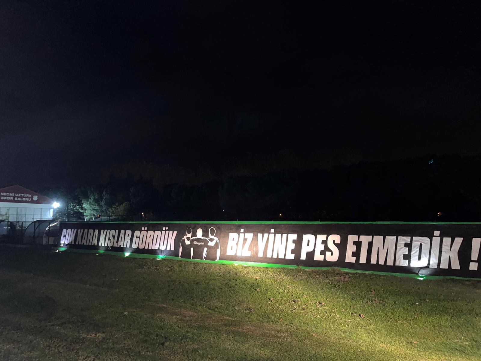 Sakaryaspor’un son haftalarda aldığı kötü sonuçlara rağmen, yeşil-siyahlı taraftar grubu Tatangalar bir kez daha takımlarına olan bağlılığını gösterdi. Her koşulda takımının yanında durmasıyla bilinen Tatangalar, bu duruşunu tekrar ortaya koyarak Rüstemler Tesisleri’ne anlamlı bir pankart astı.